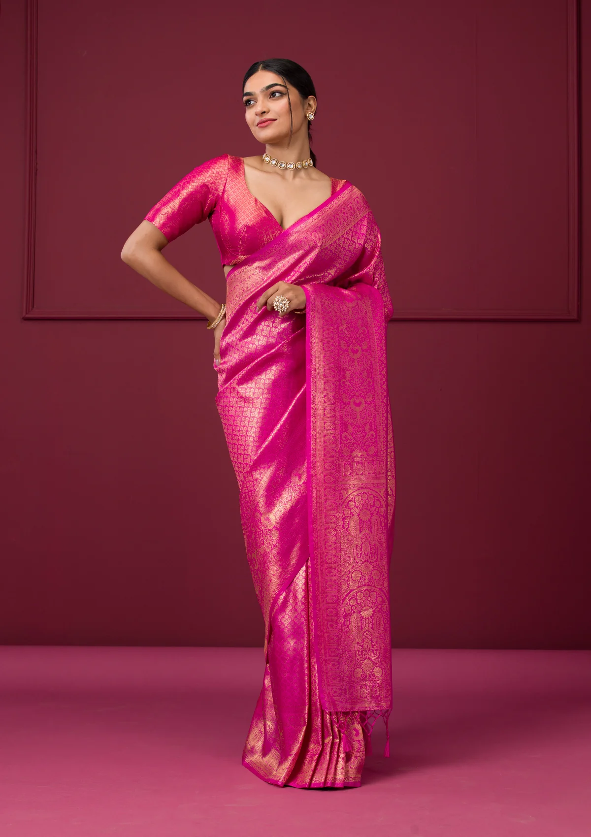 Pink Zariwork Art Silk Saree