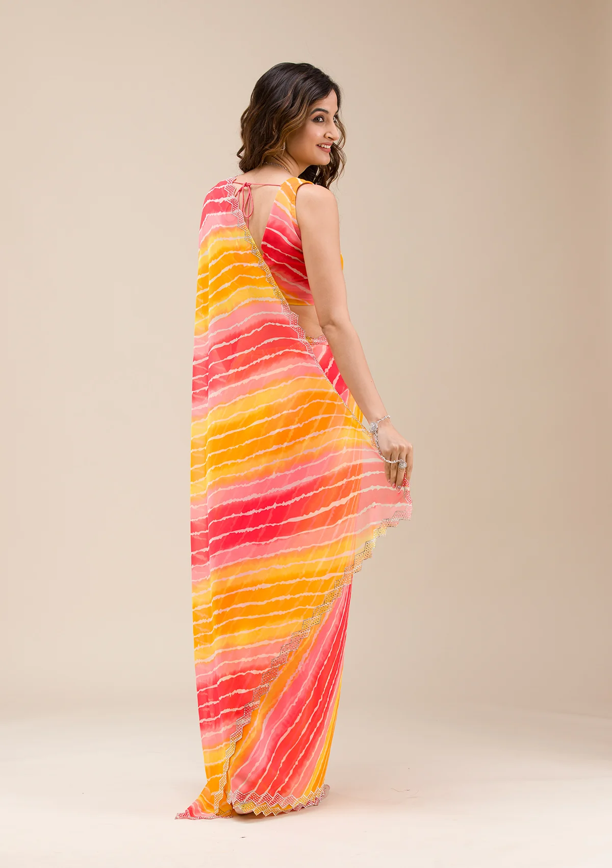 Yellow Stonework Georgette Saree